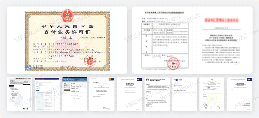 万里汇是蚂蚁集团旗下的正规平台,拿了全球60多个支付牌照,还跟大行合作: