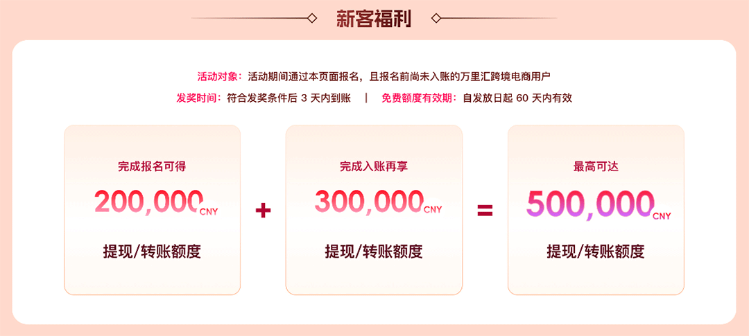 - 之前从来没用过万里汇收款(注意:注册了但没入账的,也算新用户)